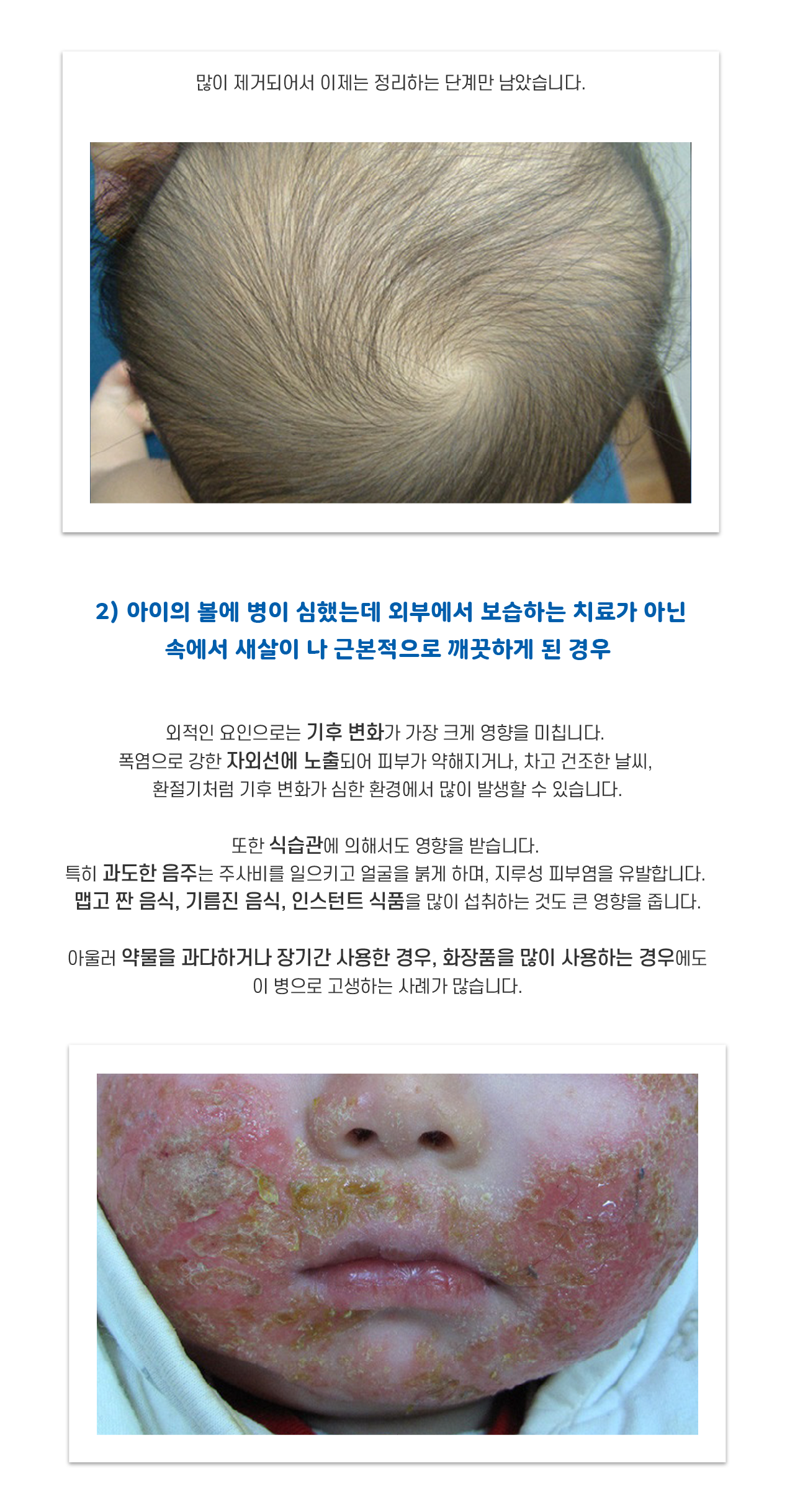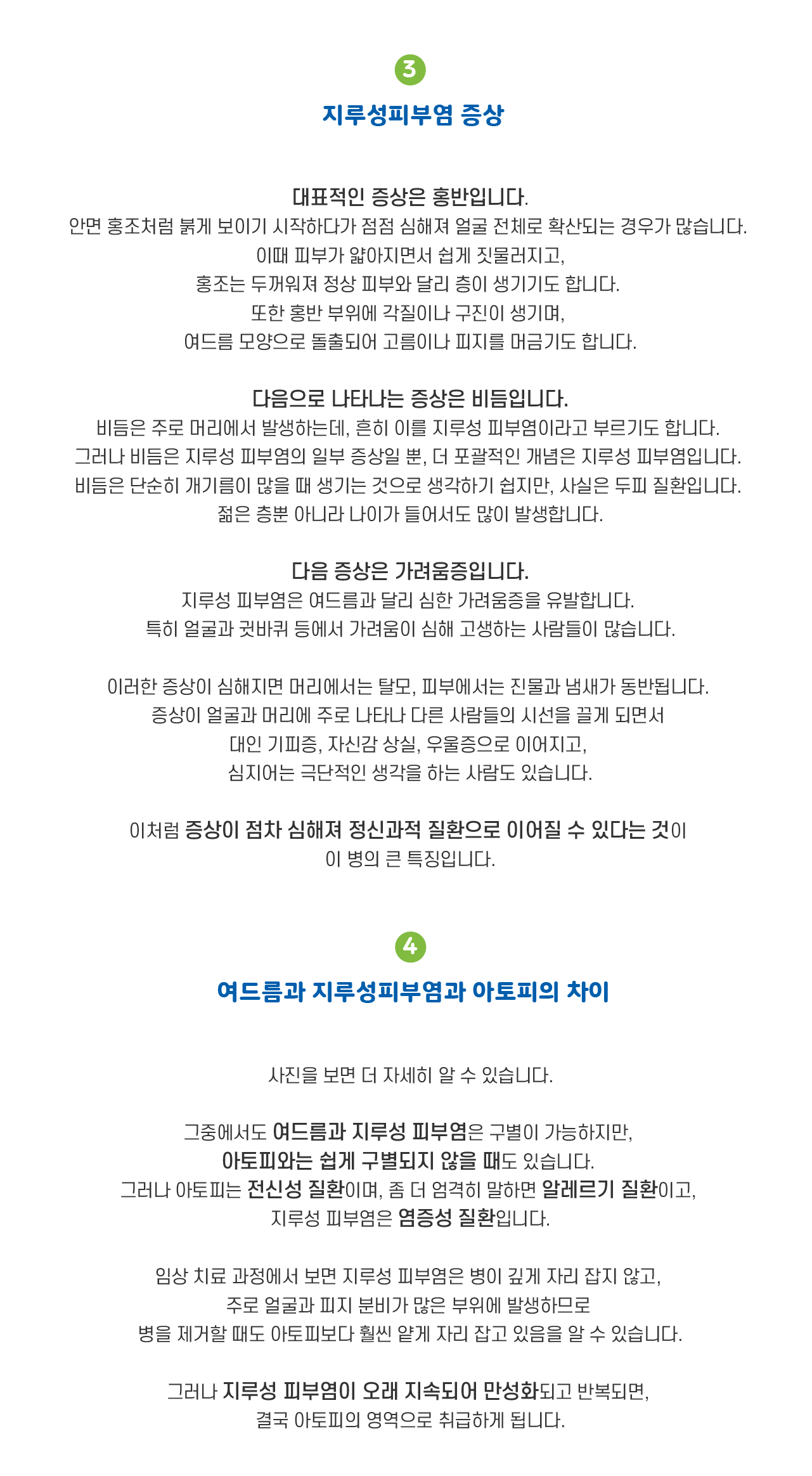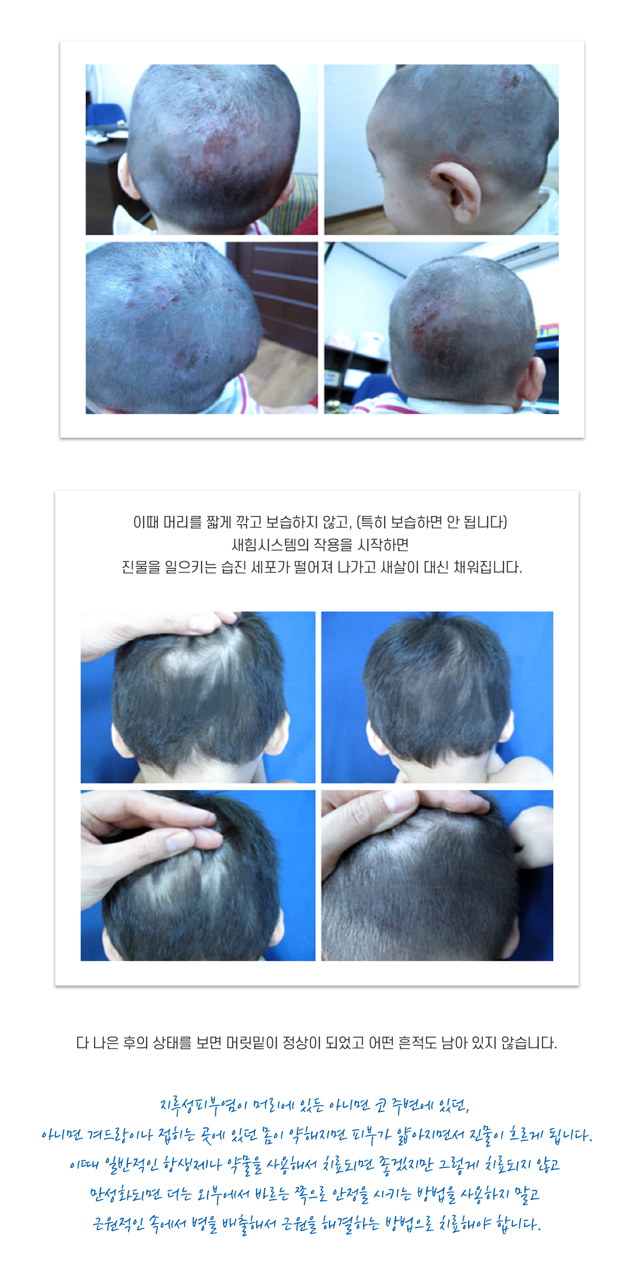 주로 얼굴, 두피, 가슴 등에 발생합니다