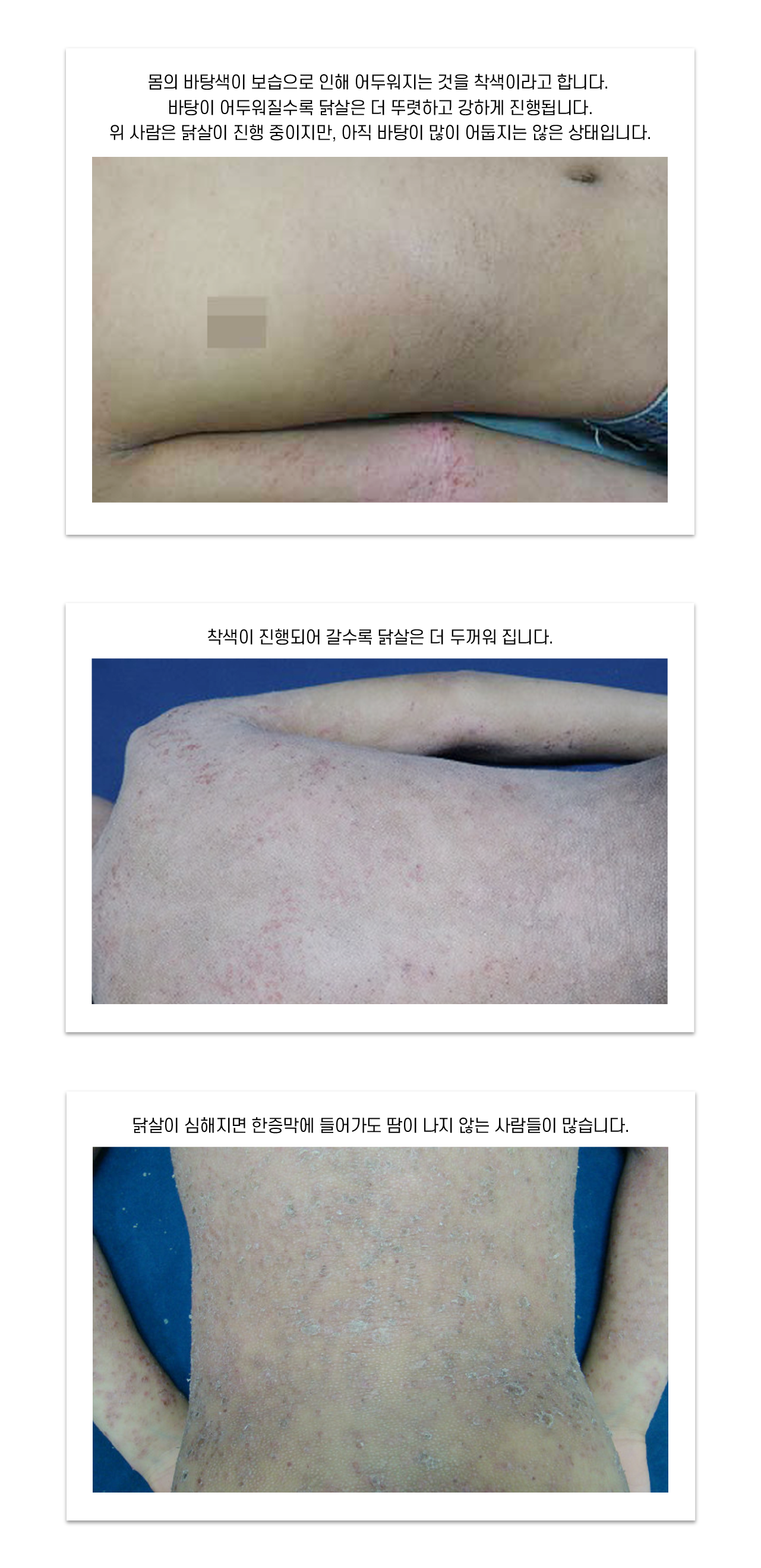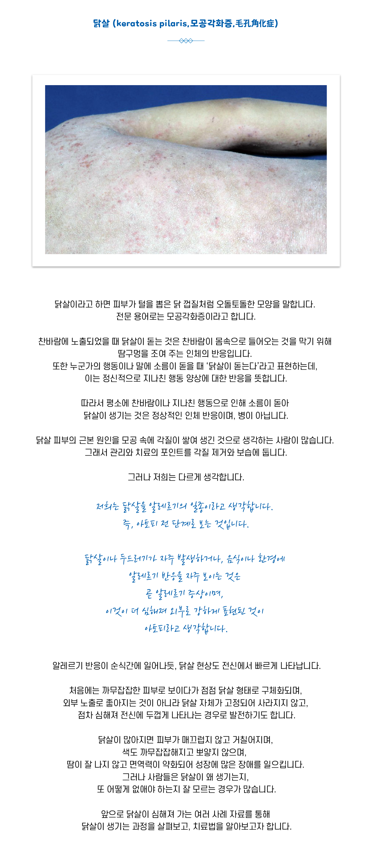 모낭 주위의 각질이 과도하게 형성되어 작은 돌기나