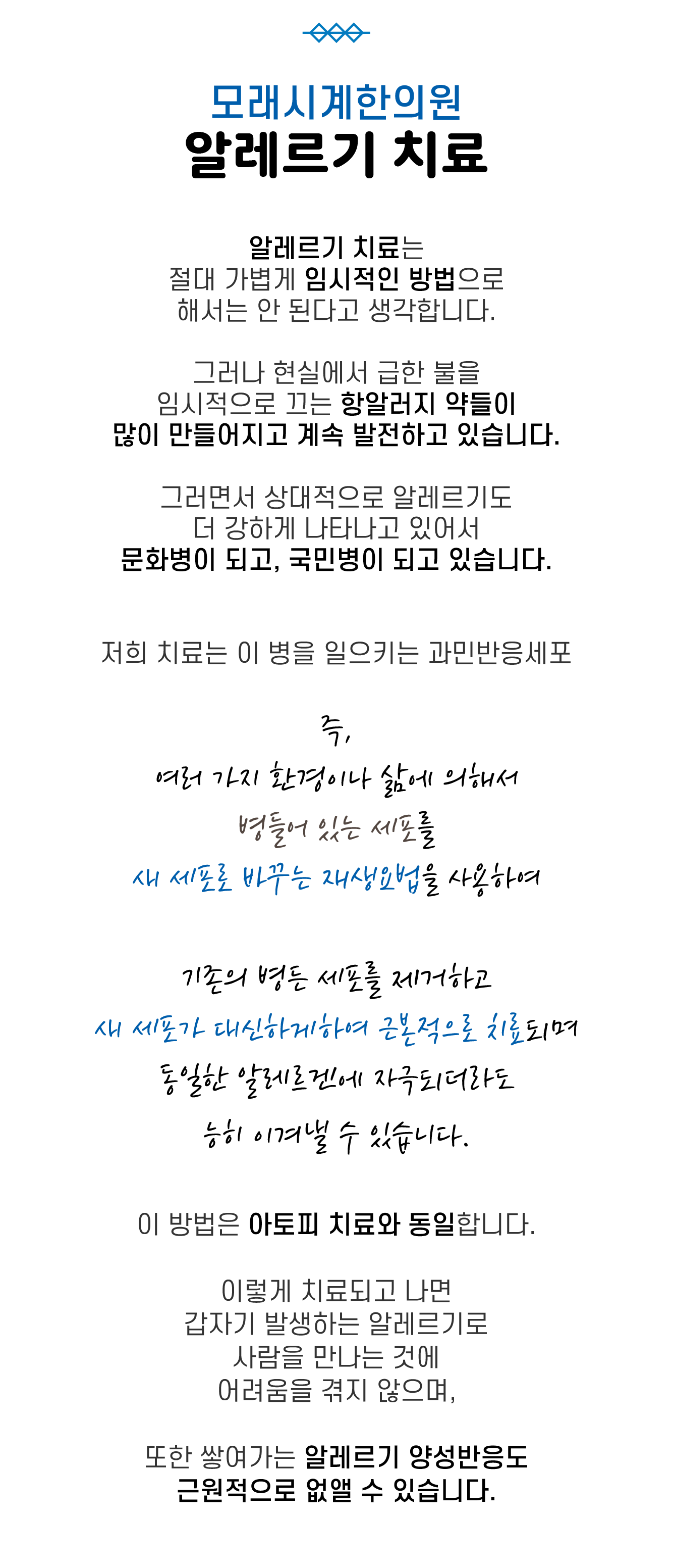 알레르기 치료는 절대 가볍게 임시적인 방법으로 해서는 안 된다고 생각합니다.