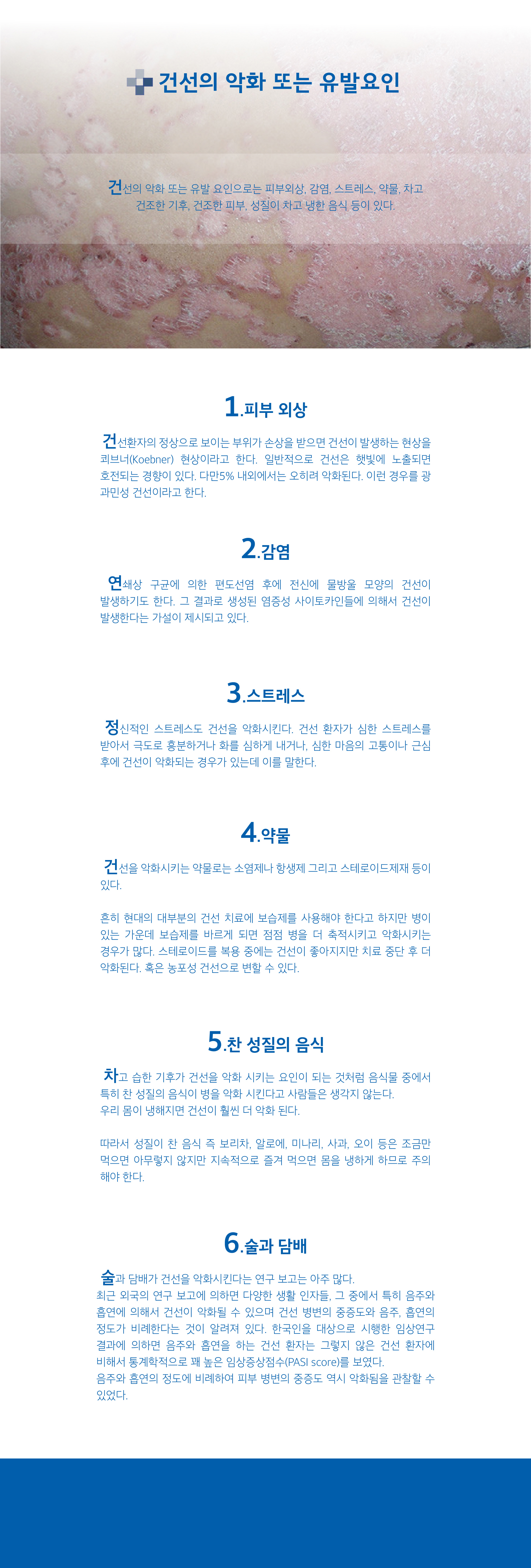 건선의 악화 또는 유발요인